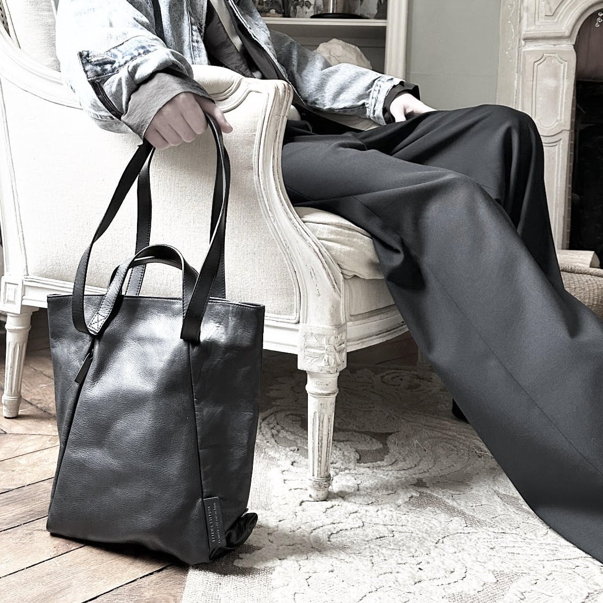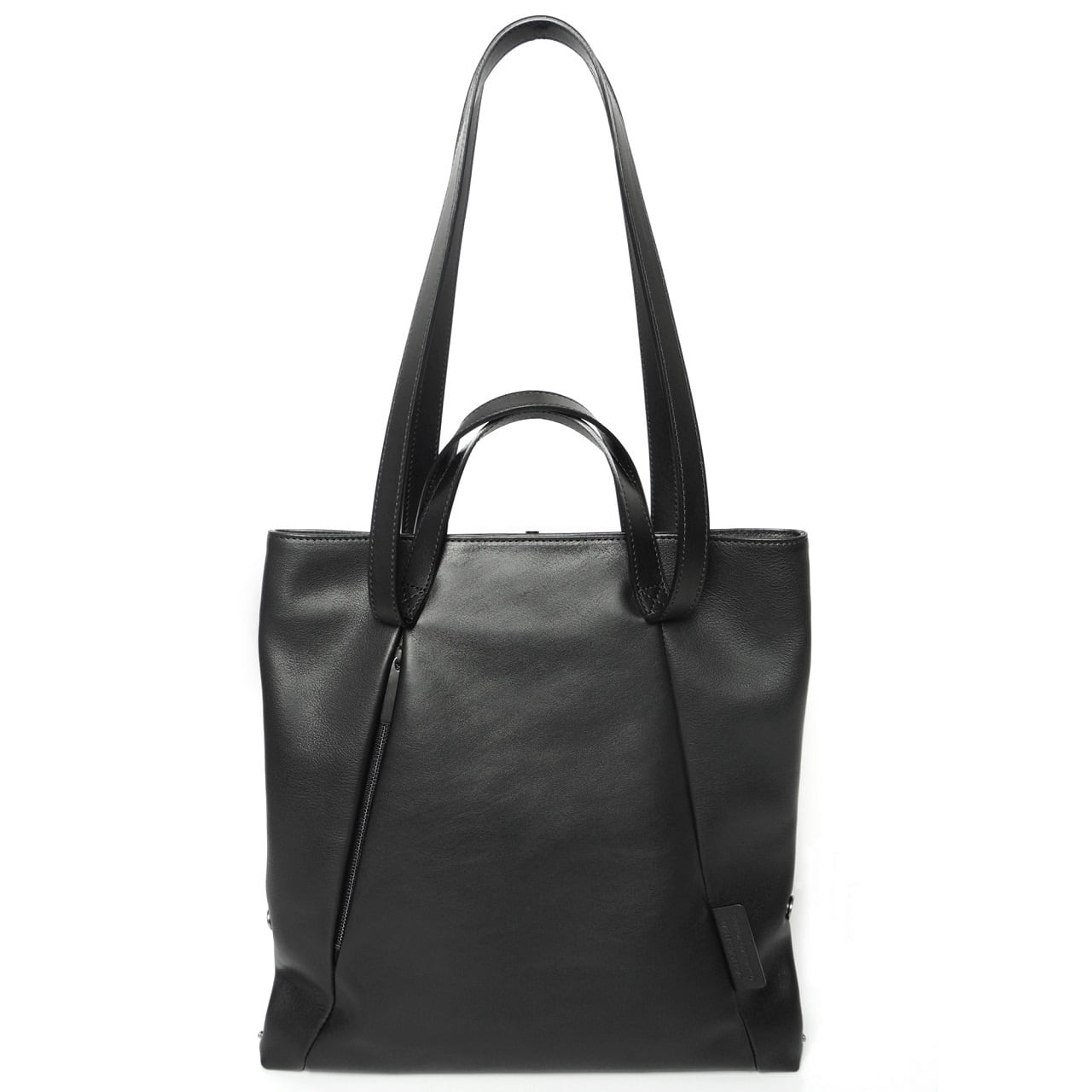 両サイドにあるスライドロックで、フラットな形から底マチ付トートへと変型。スタイリングに合わせて形状を変えてお楽しみいただけます。ループ状ハンドルも特徴で、短い方を持って手提げバッグとして、長い方を持ち上げてショルダーバッグとして2wayでお持ちいただけます。